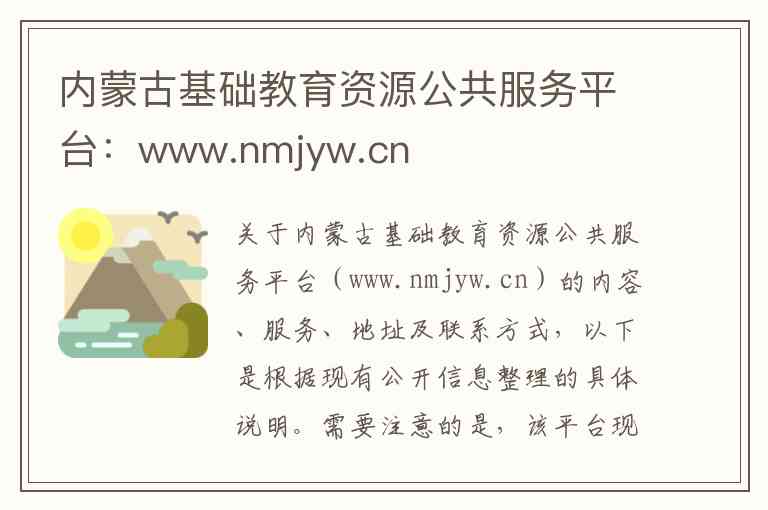 关于内蒙古基础教育资源公共服务平台(www.nmjyw.cn)的内容、服务、地址及联系方式,以下是根据现有公开信息整理的具体说明。