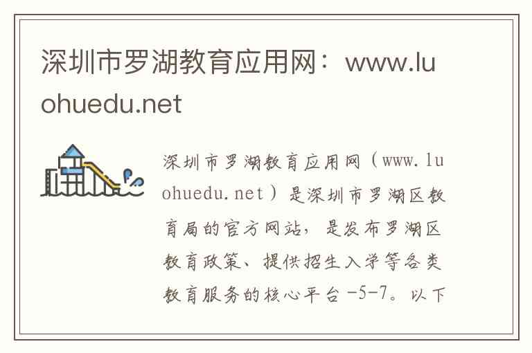 深圳市罗湖教育应用网(www.luohuedu.net)是深圳市罗湖区教育局的官方网站,是发布罗湖区教育政策、提供招生入学等各类教育服务的核心平台 -5-7。以下是对其内容、服务及联系方式的详细介绍。