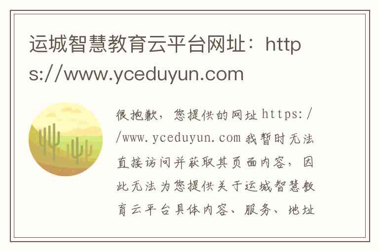 很抱歉,您提供的网址 https://www.yceduyun.com 我暂时无法直接访问并获取其页面内容,因此无法为您提供关于运城智慧教育云平台具体内容、服务、地址和联系方式的详细说明。