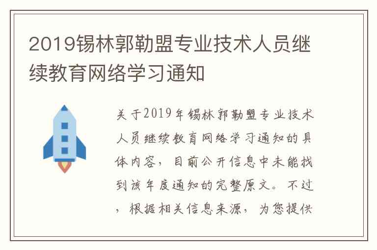 根据内蒙古自治区对于专业技术人员继续教育的常规安排,2019年锡林郭勒盟的网络学习通常包含以下内容和服务: