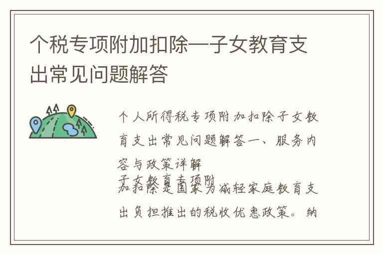 个人所得税专项附加扣除子女教育支出常见问题解答
