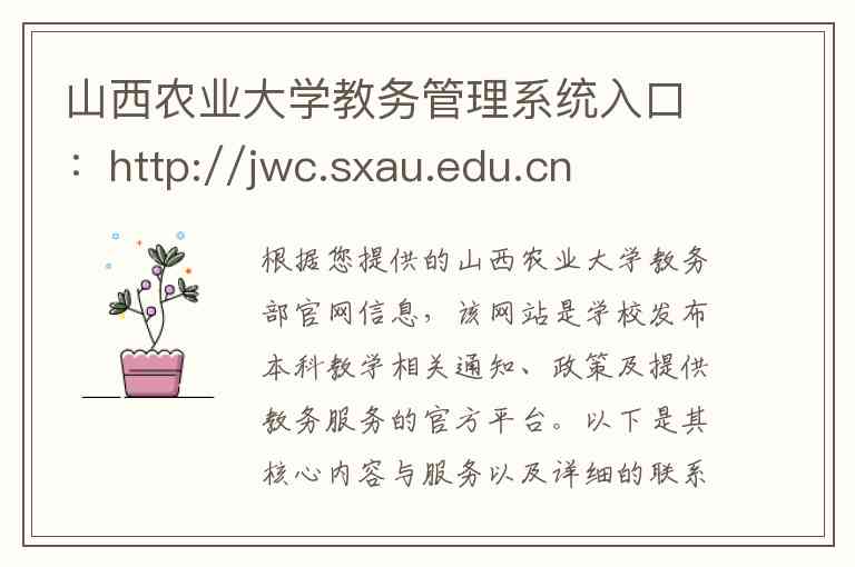 根据您提供的山西农业大学教务部官网信息,该网站是学校发布本科教学相关通知、政策及提供教务服务的官方平台。以下是其核心内容与服务以及详细的联系方式说明: