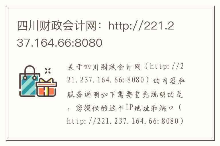 需要首先说明的是,您提供的这个IP地址和端口(http://221.237.164.66:8080)曾是四川财政会计网早期使用的访问地址-5-9。根据四川省政府网站集约化建设的要求,四川财政会计网已经完成了迁移和升级。原网站(包括www.scczkj.gov.cn等域名)的内容和功能已迁移至新的官方平台-1-7-10。因此,当前访问该IP地址可能无法获得完整的服务,官方服务现已整合至“四川会计服务”网。