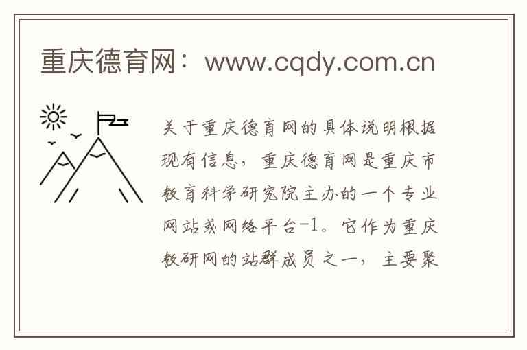 根据现有信息,重庆德育网是重庆市教育科学研究院主办的一个专业网站或网络平台-1。它作为重庆教研网的站群成员之一,主要聚焦于德育相关领域的工作与服务-1。