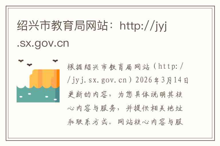 根据绍兴市教育局网站(http://jyj.sx.gov.cn)2026年3月14日更新的内容,为您具体说明其核心内容与服务,并提供相关地址和联系方式。