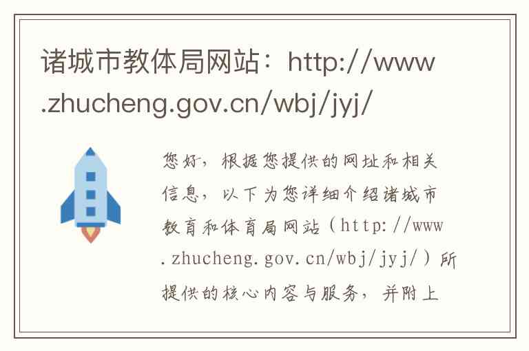 您好,根据您提供的网址和相关信息,以下为您详细介绍诸城市教育和体育局网站(http://www.zhucheng.gov.cn/wbj/jyj/)所提供的核心内容与服务,并附上该局经核实的主要联系方式。
