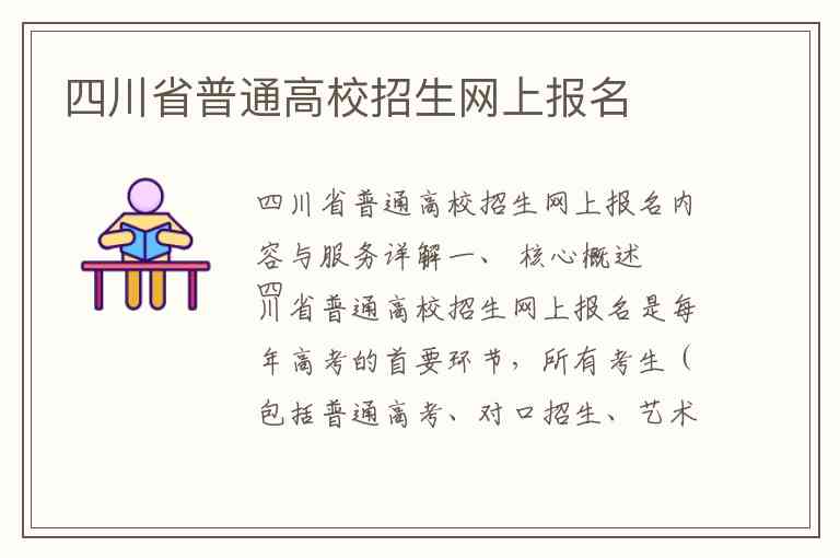 四川省普通高校招生网上报名是每年高考的首要环节,所有考生(包括普通高考、对口招生、艺术体育类、保送生、高职单招等)均须在规定时间内完成。该报名系统集成了考生信息填报、资格申报、照片采集、电子签名、网上缴费等全流程功能,是实现高考报名“一网通办”的官方平台。