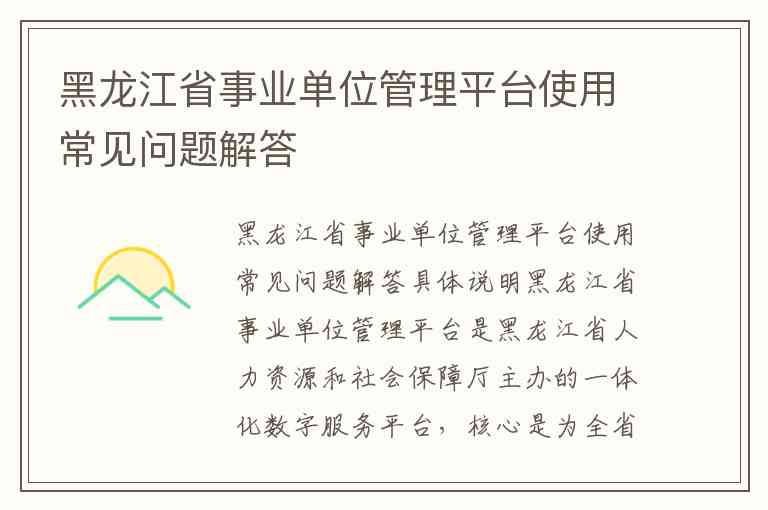 黑龙江省事业单位管理平台使用常见问题解答具体说明