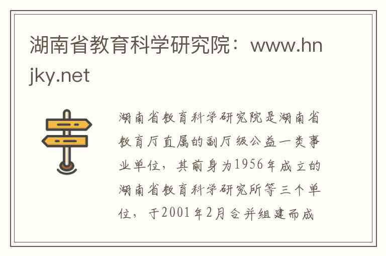 湖南省教育科学研究院是湖南省教育厅直属的副厅级公益一类事业单位,其前身为1956年成立的湖南省教育科学研究所等三个单位,于2001年2月合并组建而成 -3-5-9。以下是对其内容、服务及联系方式的详细说明。