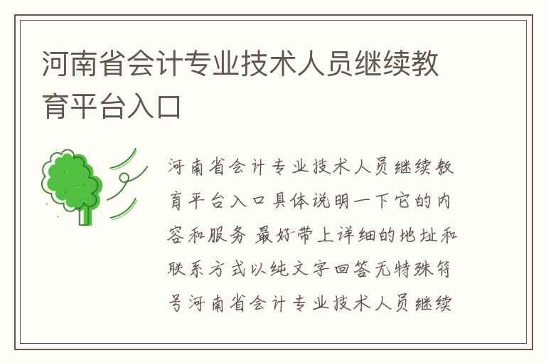 河南省会计专业技术人员继续教育平台入口具体说明一下它的内容和服务 最好带上详细的地址和联系方式以纯文字回答无特殊符号