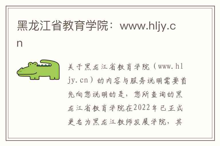 需要首先向您说明的是,您所查询的黑龙江省教育学院在2022年已正式更名为黑龙江教师发展学院,其官方网站也已更新为www.hljjsfzxy.cn -2-4-9。原网址可能已不再使用。以下是基于该机构历史与现状的详细介绍。