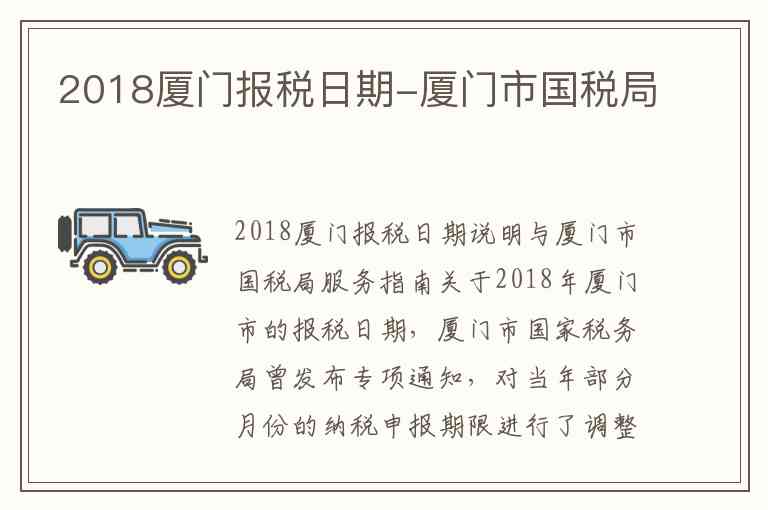 关于2018年厦门市的报税日期,厦门市国家税务局曾发布专项通知,对当年部分月份的纳税申报期限进行了调整。以下是基于该通知的详细说明,同时提供厦门市税务局的地址与联系方式,并介绍其常规服务内容。