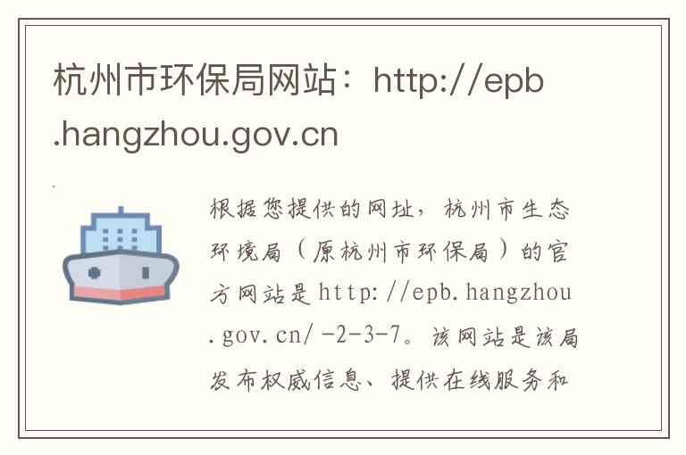 根据您提供的网址,杭州市生态环境局(原杭州市环保局)的官方网站是 http://epb.hangzhou.gov.cn/ -2-3-7。该网站是该局发布权威信息、提供在线服务和开展互动交流的官方网络平台。以下是根据网站及相关公开信息整理的详细说明。