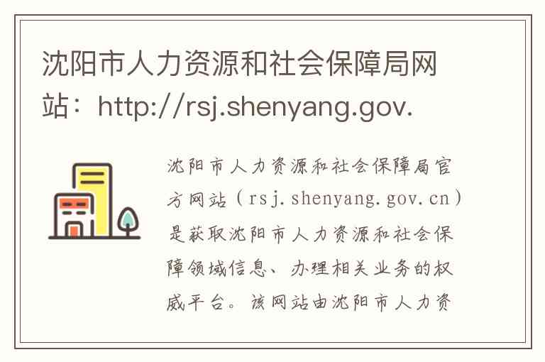 沈阳市人力资源和社会保障局官方网站(rsj.shenyang.gov.cn)是获取沈阳市人力资源和社会保障领域信息、办理相关业务的权威平台。该网站由沈阳市人力资源和社会保障局主办,其核心内容和主要服务功能可概括为以下几个方面。