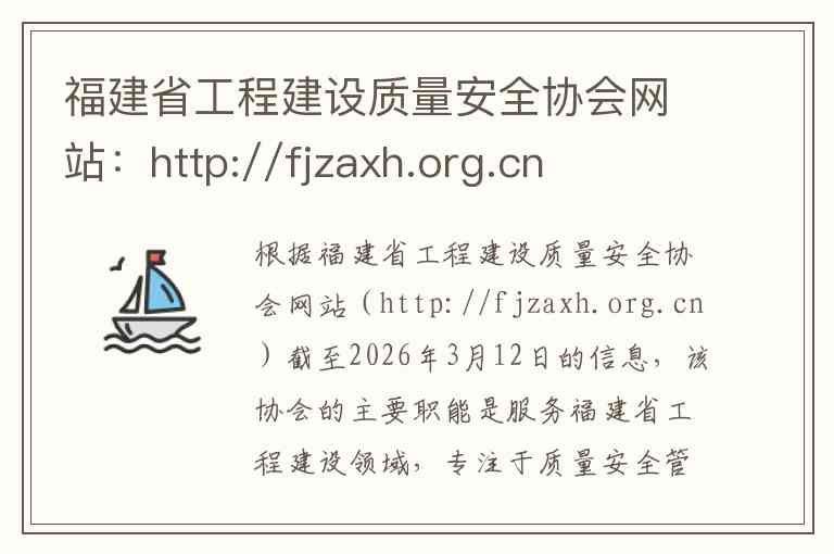 根据福建省工程建设质量安全协会网站(http://fjzaxh.org.cn)截至2026年3月12日的信息,该协会的主要职能是服务福建省工程建设领域,专注于质量安全管理与提升。其核心内容和服务可归纳为以下几个方面: