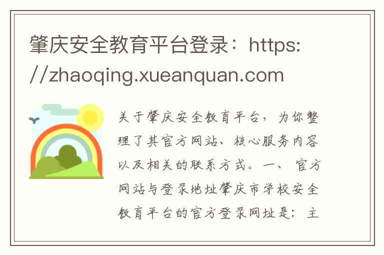 关于肇庆安全教育平台,为你整理了其官方网站、核心服务内容以及相关的联系方式。