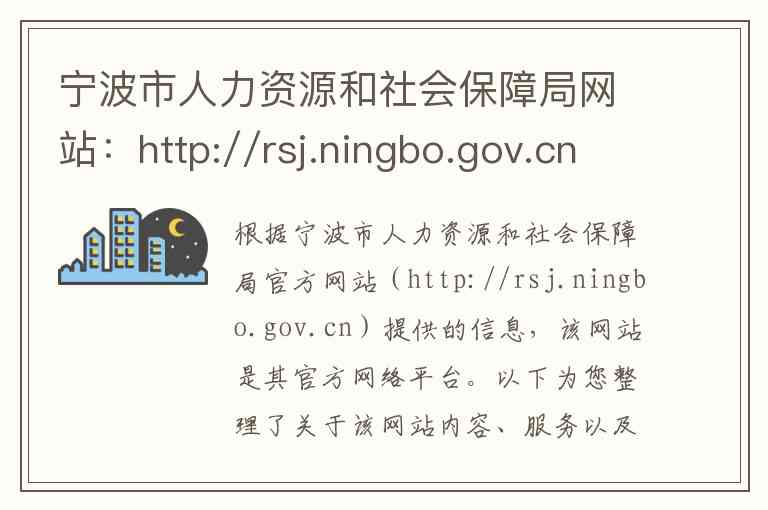 根据宁波市人力资源和社会保障局官方网站(http://rsj.ningbo.gov.cn)提供的信息,该网站是其官方网络平台。以下为您整理了关于该网站内容、服务以及详细地址联系方式的说明。