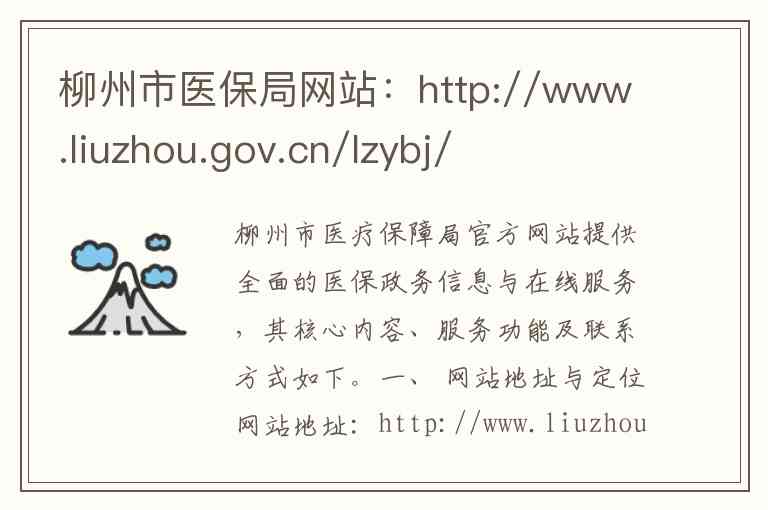 柳州市医疗保障局官方网站提供全面的医保政务信息与在线服务,其核心内容、服务功能及联系方式如下。