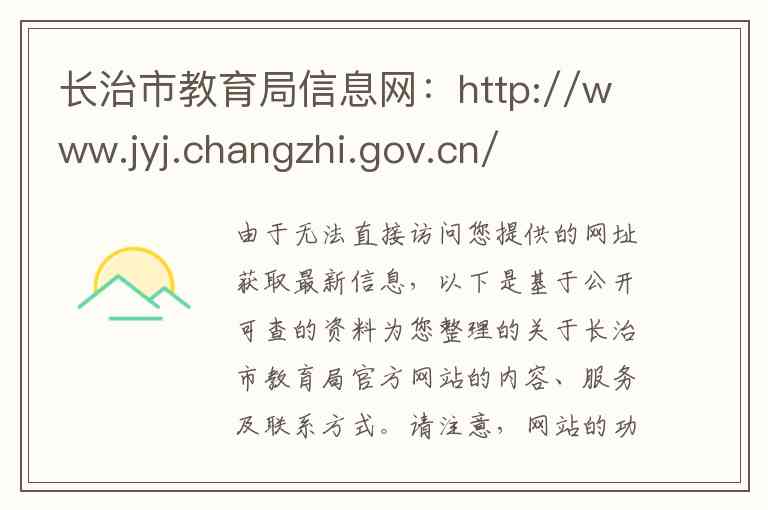 由于无法直接访问您提供的网址获取最新信息,以下是基于公开可查的资料为您整理的关于长治市教育局官方网站的内容、服务及联系方式。请注意,网站的功能和布局可能会更新,以下信息供您参考。