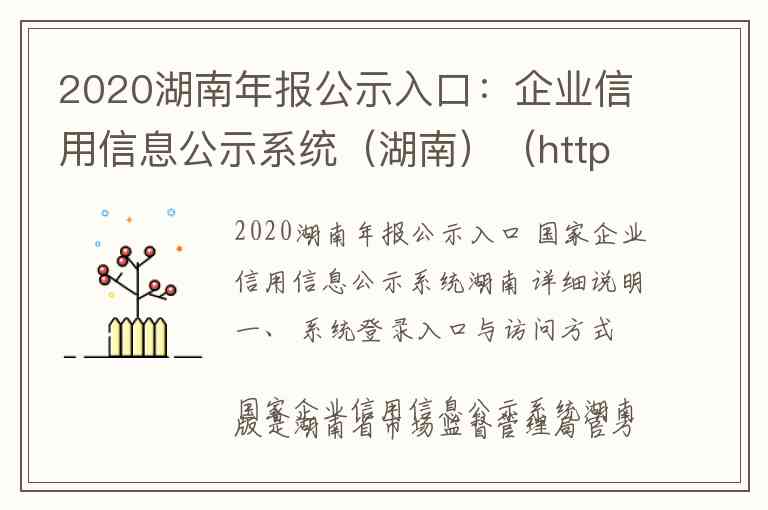 2020湖南年报公示入口 国家企业信用信息公示系统湖南 详细说明