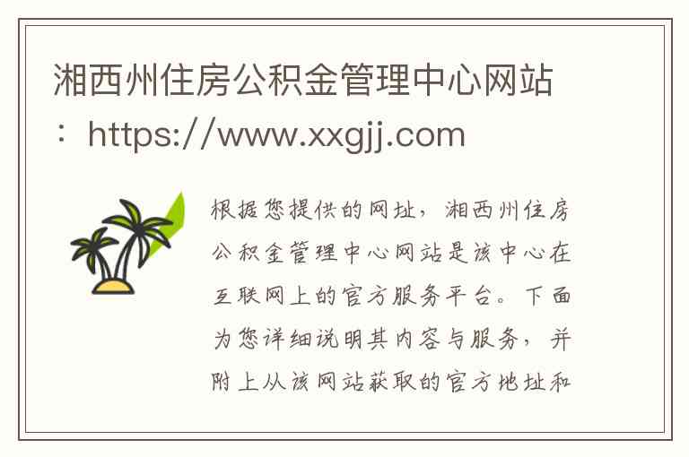 根据您提供的网址,湘西州住房公积金管理中心网站是该中心在互联网上的官方服务平台。下面为您详细说明其内容与服务,并附上从该网站获取的官方地址和联系方式。