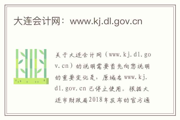 需要首先向您说明的重要变化是,原域名 www.kj.dl.gov.cn 已停止使用。根据大连市财政局2018年发布的官方通知,大连会计网已整合进入大连市财政局门户网站,其内容和服务现在通过新地址提供 -3-5。