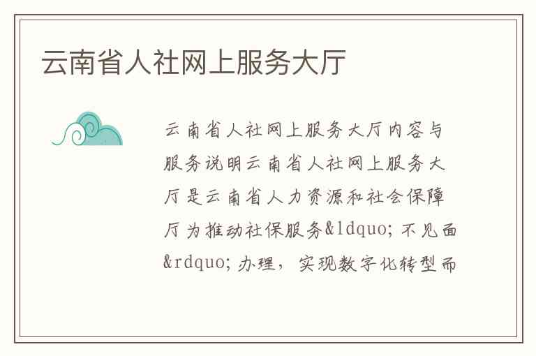 为了确保信息安全与业务办理的准确性,建议通过官方渠道访问和服务。以下是云南省人社网上服务大厅的关键信息和联系方式:
