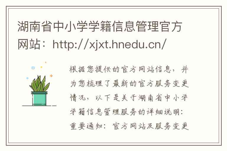 根据您提供的官方网站信息,并为您梳理了最新的官方服务变更情况,以下是关于湖南省中小学学籍信息管理服务的详细说明: