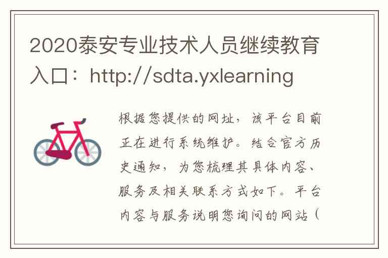 您询问的网站(http://sdta.yxlearning.com)是“泰安市专业技术人员公共服务平台”,曾作为泰安市专业技术人员继续教育的官方线上培训主平台之一-2-6。