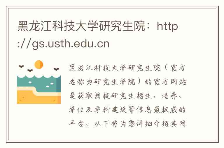 黑龙江科技大学研究生学院网站(http://gs.usth.edu.cn/)是学院发布信息和服务师生的核心窗口,其内容和服务可以归纳为以下几个方面: