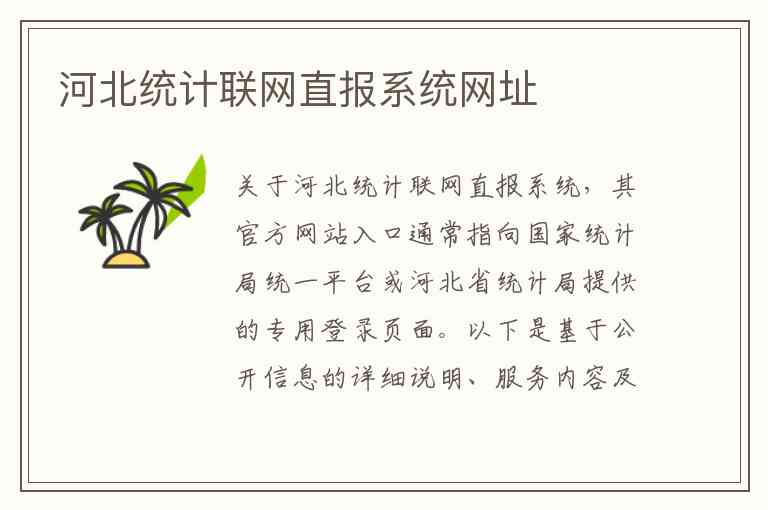 关于河北统计联网直报系统,其官方网站入口通常指向国家统计局统一平台或河北省统计局提供的专用登录页面。以下是基于公开信息的详细说明、服务内容及联系方式。