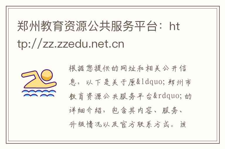 根据您提供的网址和相关公开信息,以下是关于原“郑州市教育资源公共服务平台”的详细介绍,包含其内容、服务、升级情况以及官方联系方式。该平台现已升级为“郑州市中小学智慧教育平台”。