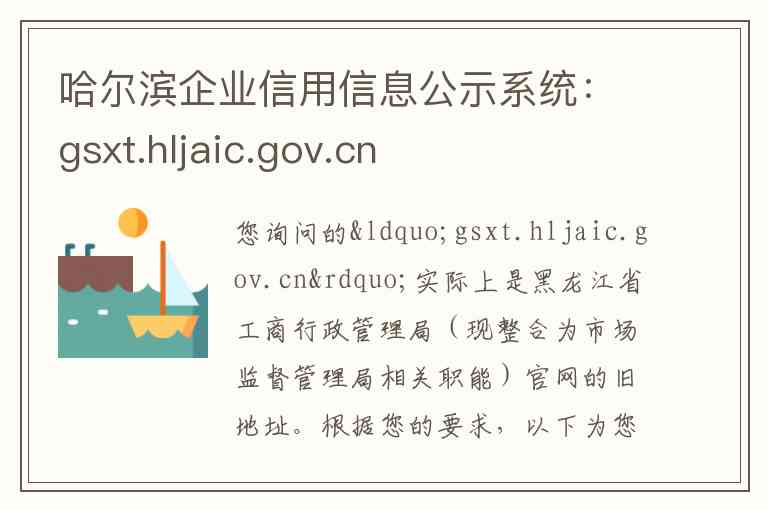 您询问的“gsxt.hljaic.gov.cn”实际上是黑龙江省工商行政管理局(现整合为市场监督管理局相关职能)官网的旧地址。根据您的要求,以下为您详细介绍目前哈尔滨市企业信用信息公示相关的内容与服务,并附上联系信息。