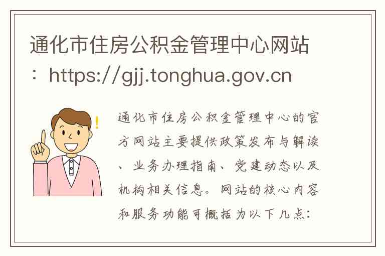 总结来说,该网站是获取通化市住房公积金官方政策信息、了解最新业务动态和办理通知的主要渠道。如果您需要办理具体业务,建议先通过网站了解最新政策或致电服务热线咨询。