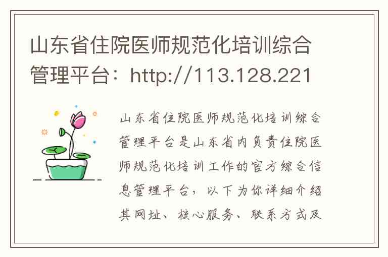 根据你提供的信息,该平台的历史访问网址为 http://113.128.221.19:8000/ 。需要特别注意的是,山东省住院医师规范化培训的信息化管理平台在近年来经历了整合与升级,入口和名称有所变化。