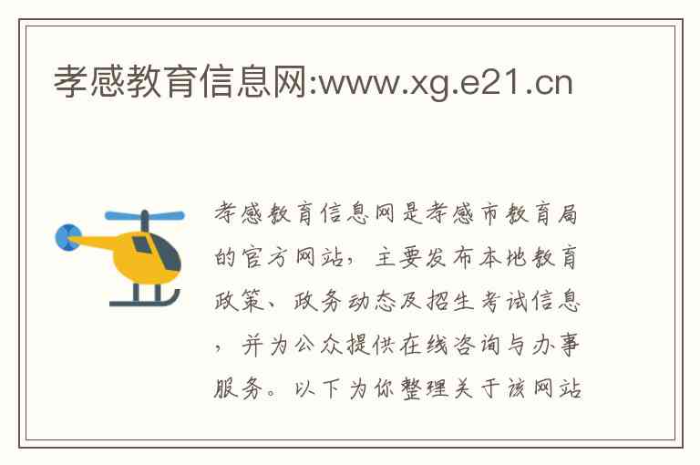 孝感教育信息网是孝感市教育局的官方网站,主要发布本地教育政策、政务动态及招生考试信息,并为公众提供在线咨询与办事服务。以下为你整理关于该网站的官方说明、服务内容及联系方式。