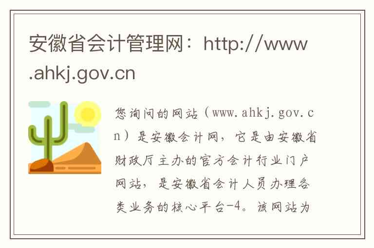 您询问的网站(www.ahkj.gov.cn)是安徽会计网,它是由安徽省财政厅主办的官方会计行业门户网站,是安徽省会计人员办理各类业务的核心平台-4。该网站为全省会计从业人员提供一站式、综合性的管理与服务。