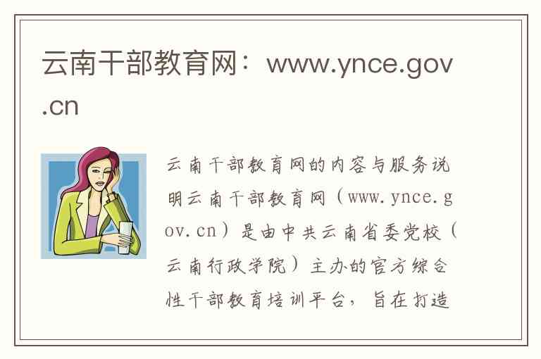 云南干部教育网(www.ynce.gov.cn)是由中共云南省委党校(云南行政学院)主办的官方综合性干部教育培训平台,旨在打造新时代“互联网+干部教育”的新型红色网络学府-1-3。该网站集宣传、教学、管理、服务于一体,面向全省各级领导干部及公务员,提供丰富的在线学习资源和便捷的培训管理服务-4。