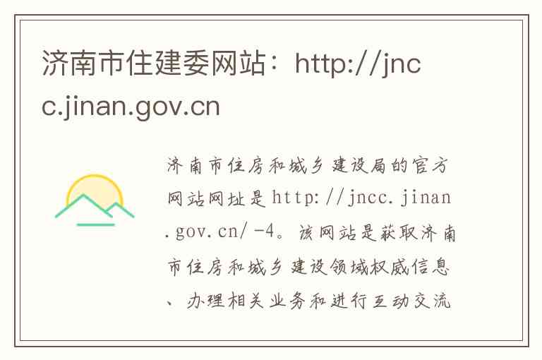 济南市住房和城乡建设局的官方网站网址是 http://jncc.jinan.gov.cn/ -4。该网站是获取济南市住房和城乡建设领域权威信息、办理相关业务和进行互动交流的核心平台,其主要内容和服务可分为以下几个方面: