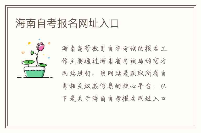 海南高等教育自学考试的报名工作主要通过海南省考试局的官方网站进行,该网站是获取所有自考相关权威信息的核心平台。以下是关于海南自考报名网址入口、提供的内容与服务,以及详细的地址和联系方式的纯文字说明。