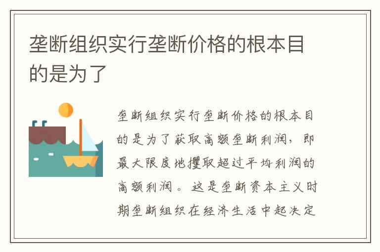 垄断组织实行垄断价格的根本目的是为了获取高额垄断利润,即最大限度地攫取超过平均利润的高额利润 。这是垄断资本主义时期垄断组织在经济生活中起决定作用的核心体现 。