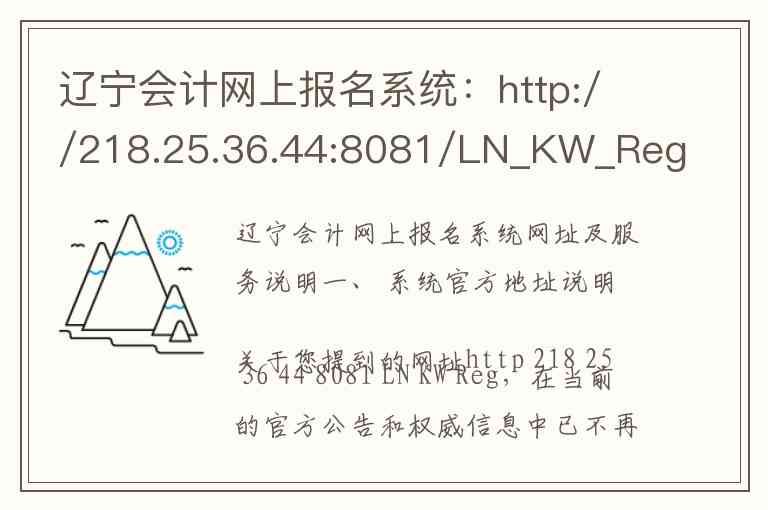关于您提到的网址http 218 25 36 44 8081 LN KW Reg,在当前的官方公告和权威信息中已不再作为主要入口。根据辽宁省财政厅及各地市财政局发布的最新通知,辽宁省会计类考试报名、信息采集及继续教育等服务已整合至新的官方平台。