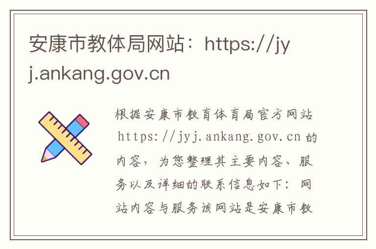根据安康市教育体育局官方网站 https://jyj.ankang.gov.cn 的内容,为您整理其主要内容、服务以及详细的联系信息如下: