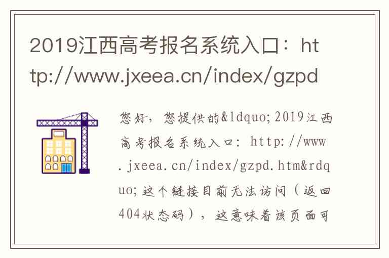 您好,您提供的“2019江西高考报名系统入口:http://www.jxeea.cn/index/gzpd.htm”这个链接目前无法访问(返回404状态码),这意味着该页面可能已经失效或被迁移。作为替代,我为您整理了关于2019年江西省高考报名的官方信息、核心内容以及江西省教育考试院目前有效的联系方式,希望能帮助您了解情况。