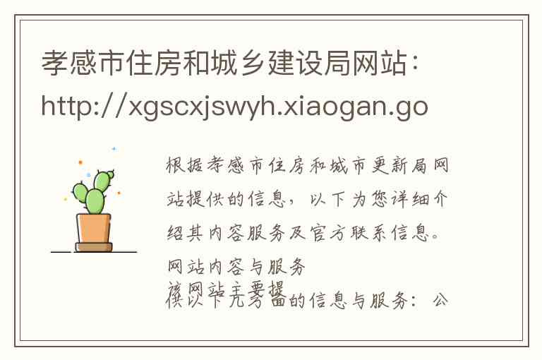 根据孝感市住房和城市更新局网站提供的信息,以下为您详细介绍其内容服务及官方联系信息。