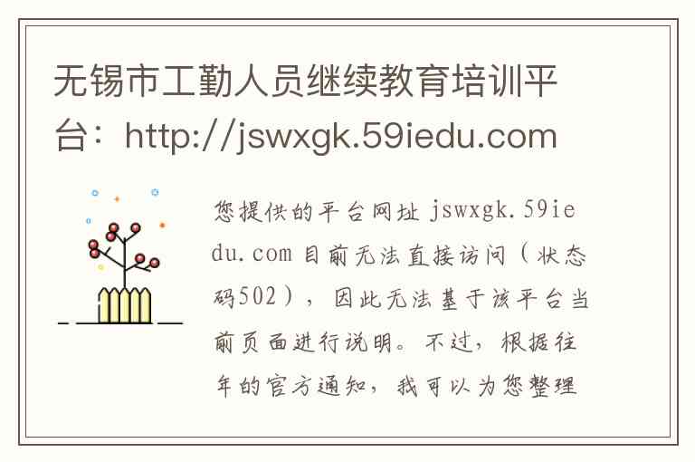 您提供的平台网址 jswxgk.59iedu.com 目前无法直接访问(状态码502),因此无法基于该平台当前页面进行说明。不过,根据往年的官方通知,我可以为您整理该平台的相关内容与服务信息,并提供当时有效的联系方式和地址供您参考。