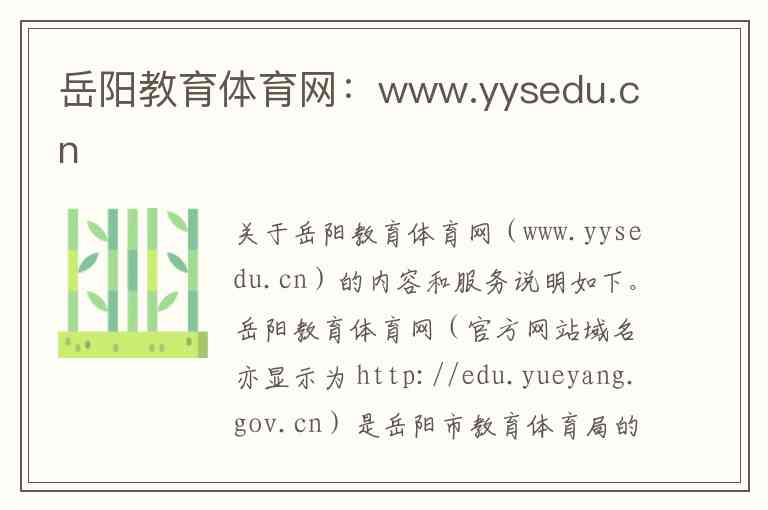 关于岳阳教育体育网(www.yysedu.cn)的内容和服务说明如下。
