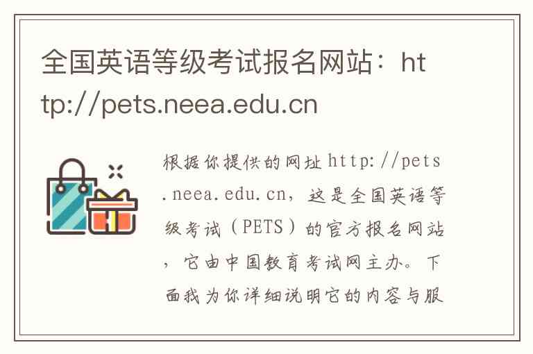 根据你提供的网址 http://pets.neea.edu.cn,这是全国英语等级考试(PETS)的官方报名网站,它由中国教育考试网主办。下面我为你详细说明它的内容与服务,并提供你需要的地址和联系方式。