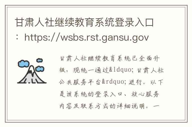甘肃人社继续教育系统已全面升级,现统一通过“甘肃人社公共服务平台”进行。以下是该系统的登录入口、核心服务内容及联系方式的详细说明。