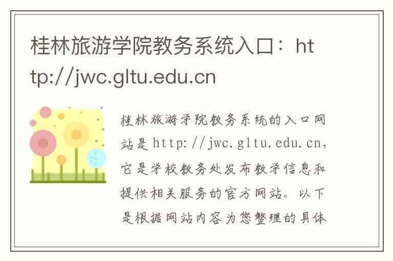 桂林旅游学院教务系统的入口网站是